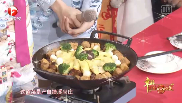 节目中,,,,解卫总厨现场制作了著名徽菜“胡氏一品锅”。。。将干笋、干菜垫底,,,,浇入味醇汁浓的红烧肉,,,,再铺满鲜嫩爽滑蛋饺和油炸豆腐,,,,最后搭配蔬菜及蛋类,,,,加上调料及适量的水用文火煨熟。。。烧制完成的胡氏一品锅色味俱佳、香味四溢、金光闪闪、寓意吉祥。。。从星级旅馆厨房走到荧屏前,,,,解卫用他娴熟精湛的厨艺,,,,引得主持人和现场嘉宾连连赞美。。。