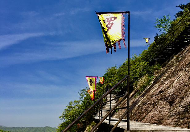 拾级登高,,此时放眼望去,,百家姓的旌旗沿着蜿蜒的栈道,,一面面的向远处、高处绵延而去。。。。。或许你的姓,,在栈道的上头,,吸引一直抬眼去找寻,,去追赶,,在一直攀爬寻找的途中,,给了你目的与动力。。。。。